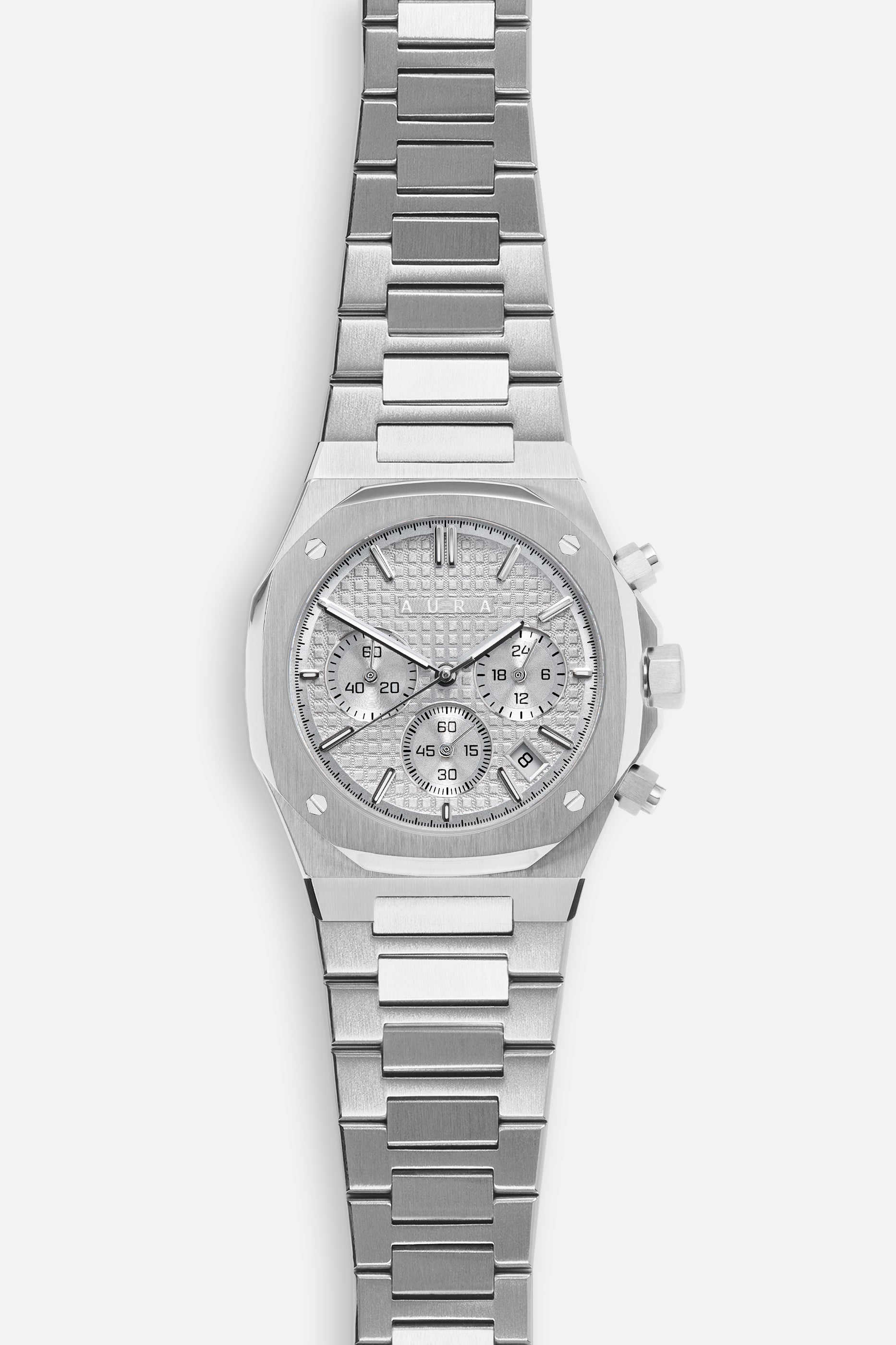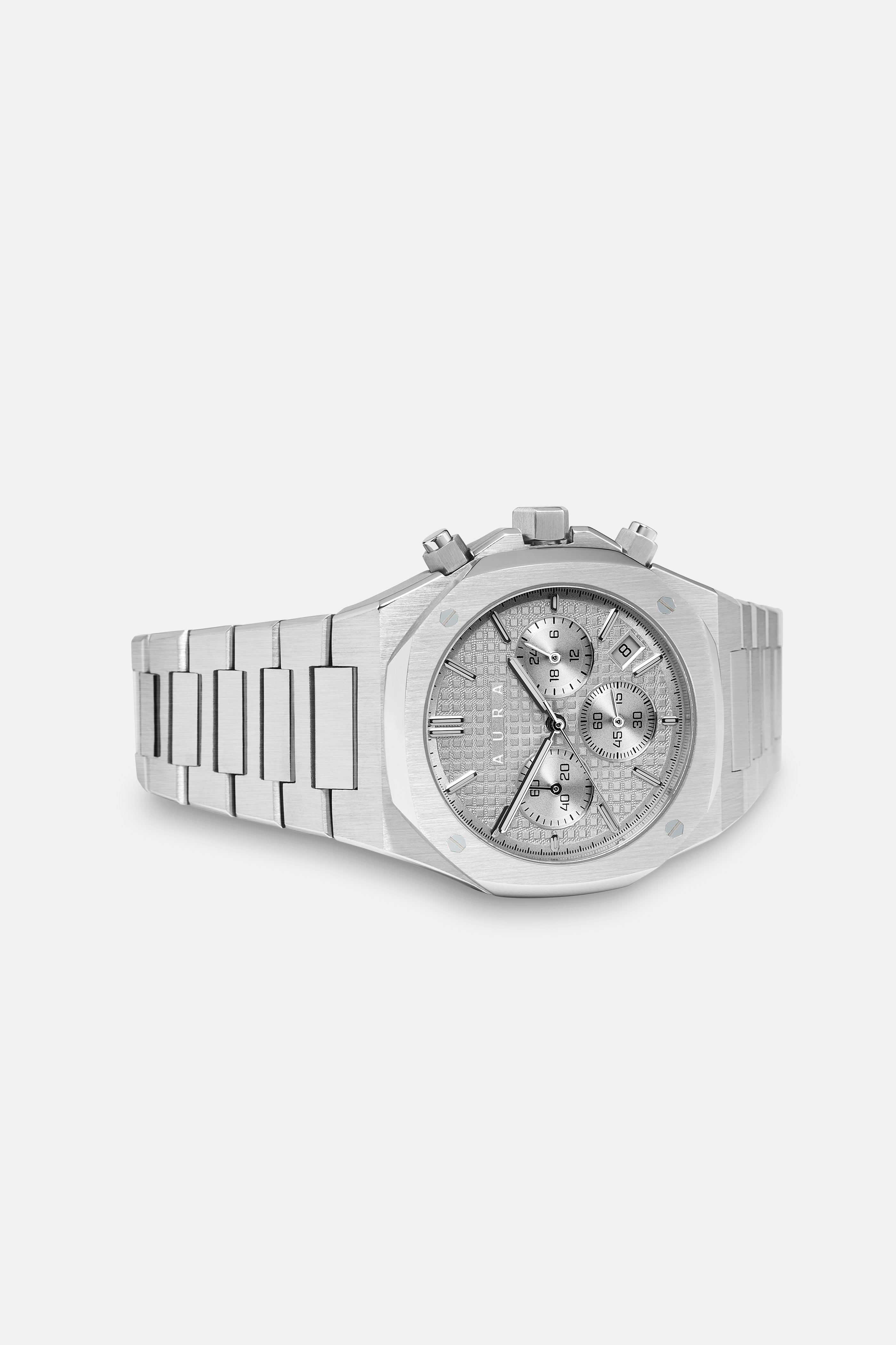 The Chronograph 001 collection pays homage to the rich heritage of chronograph watches, which originated in the early 19th century as specialized tools for precise timekeeping in various fields like aviation, racing and sports. Combining traditional chronograph design with modern sophistication, these watches offer practical functionality including stopwatch capability for measuring elapsed time alongside their stylish aesthetic.