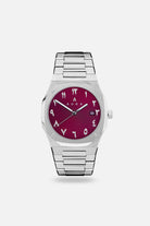 The Aura Date stands out as our most classic design, embodying sophistication and luxury with its timeless elegance. The Date 003: Steel/Maroon Arabic features a Seiko Japan NH35A self-winding movement, housed in a blend of brushed and polished steel, and highlights a stunning sunburst pattern maroon dial with Arabic markers.