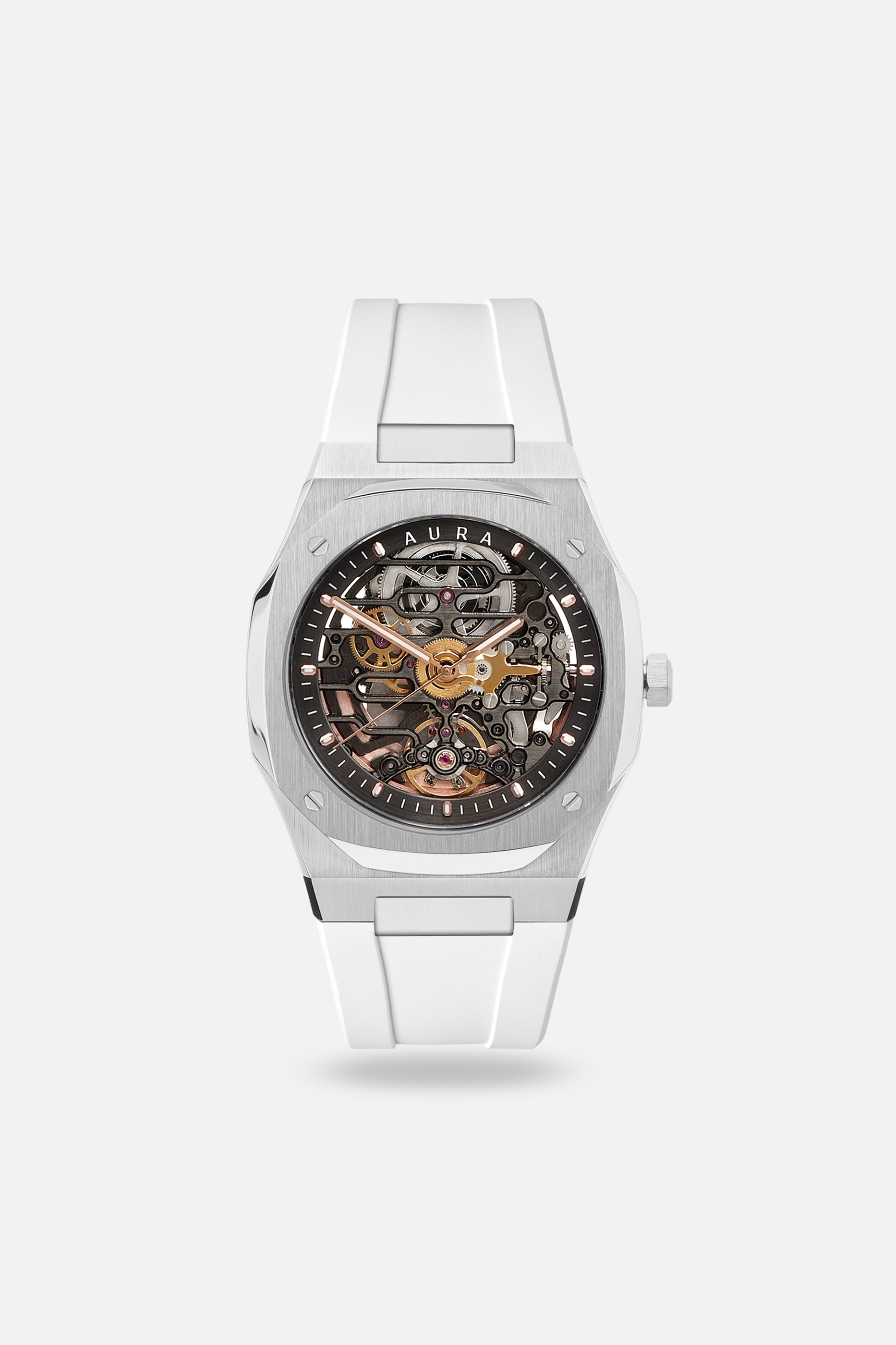 Aura FKM Rubber Straps are made from the highest quality FKM material for maximum comfort and durability, and feature stainless steel butterfly clasps. Each FKM Strap is compatible with all AURA Automatic Watches such as Skeleton, Date, and 1023 watch models. Personalize your collection, express your individuality, and show your AURA with these bold, fashionable, and functional straps.