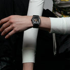 Introducing the latest iteration of our esteemed Skeleton series, the Skeleton 002: Black. This exceptional timepiece stands out with its mesmerizing self-winding transparent skeleton movement, offering a captivating glimpse into the intricate mechanics that power it. Crafted with utmost precision and durability in mind, its robust stainless steel case ensures longevity and resilience against the rigors of everyday wear. Complemented by an integrated steel bracelet, this watch exudes both sophistication and strength, making it a timeless accessory for the discerning connoisseur. Explore the fusion of innovation and elegance with the Stainless Steel Skeleton 002, a testament to our commitment to excellence in horology.